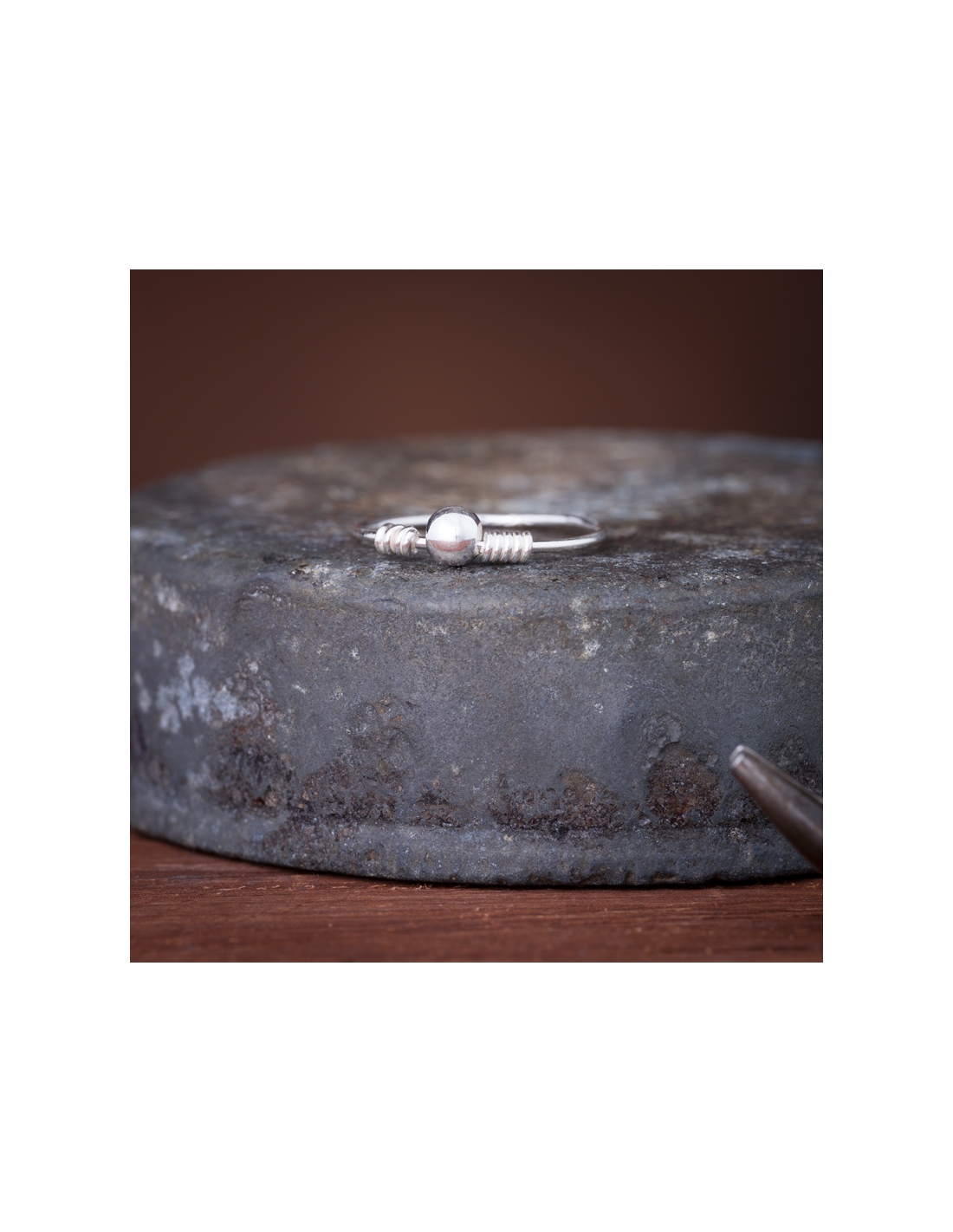 Anillos de plata .925 bolita lisa con espirales, medida #5.5