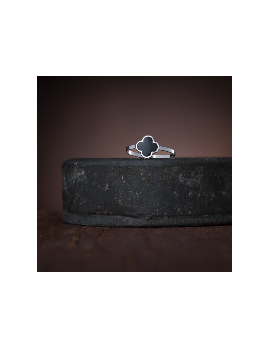 Anillo de plata .925 Flor esmalte negro, talla 8