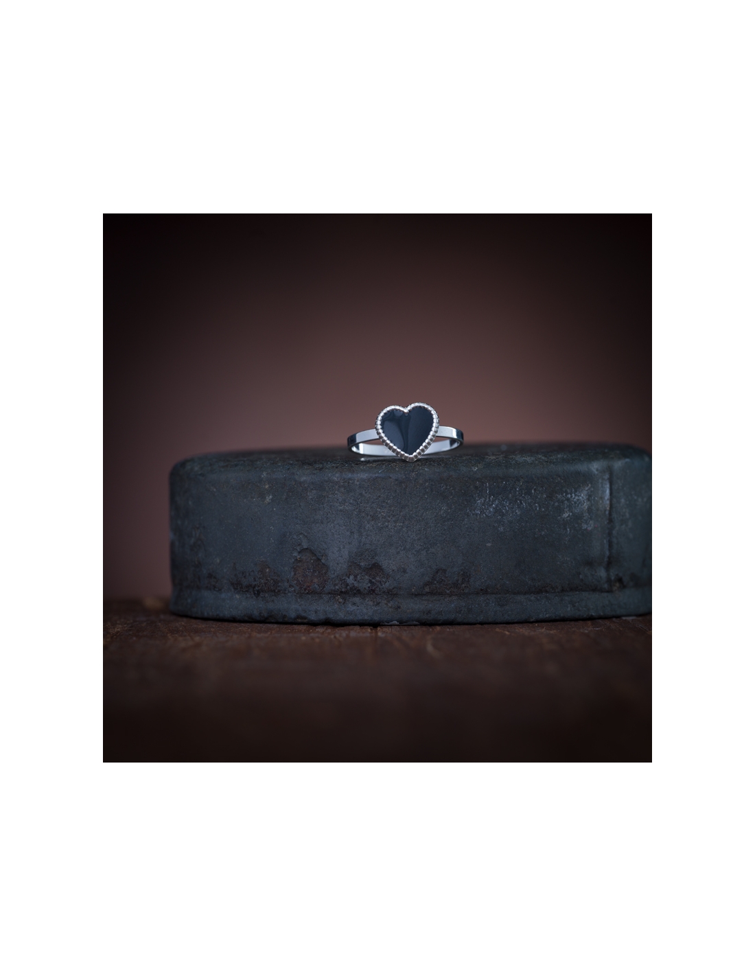 Anillo de plata .925 corazón esmalte negro, talla 4.5