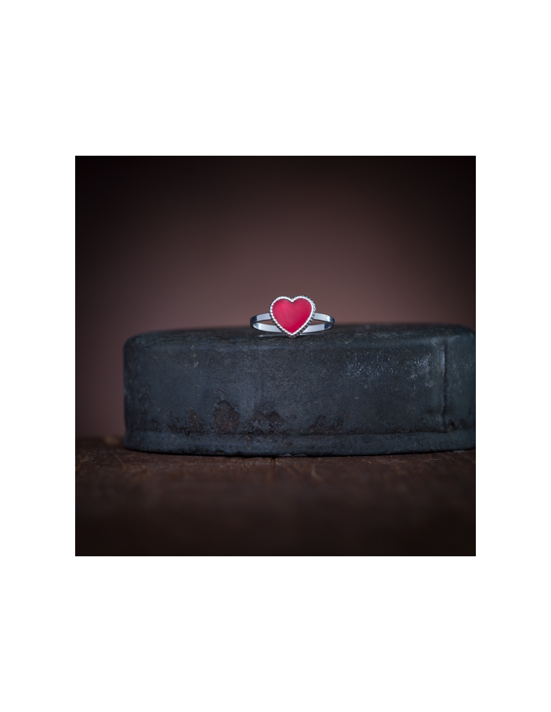 Anillo de plata .925 corazón esmalte rojo, talla 8.5