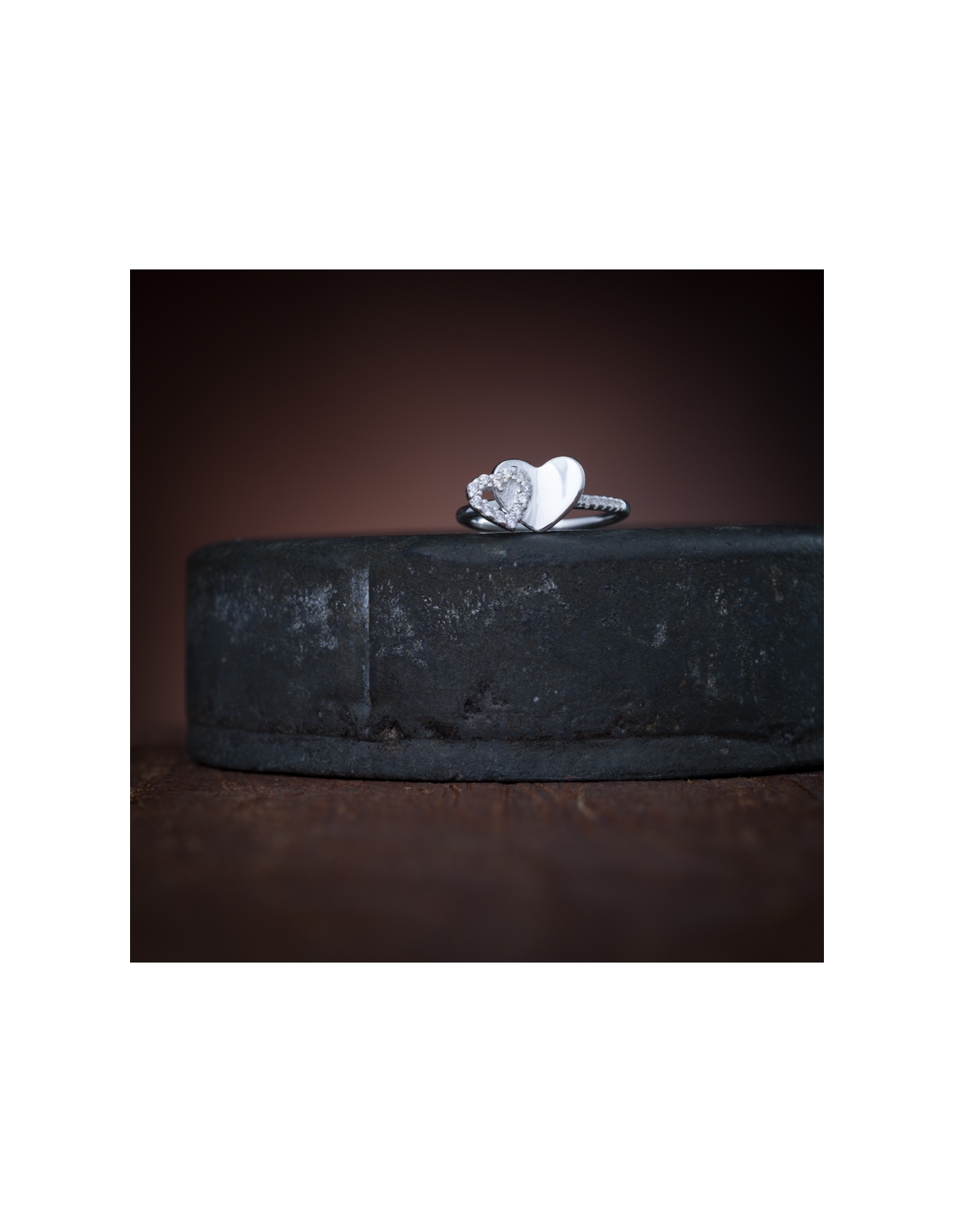 Anillos de plata .925 doble corazón con micro circonias, talla 6