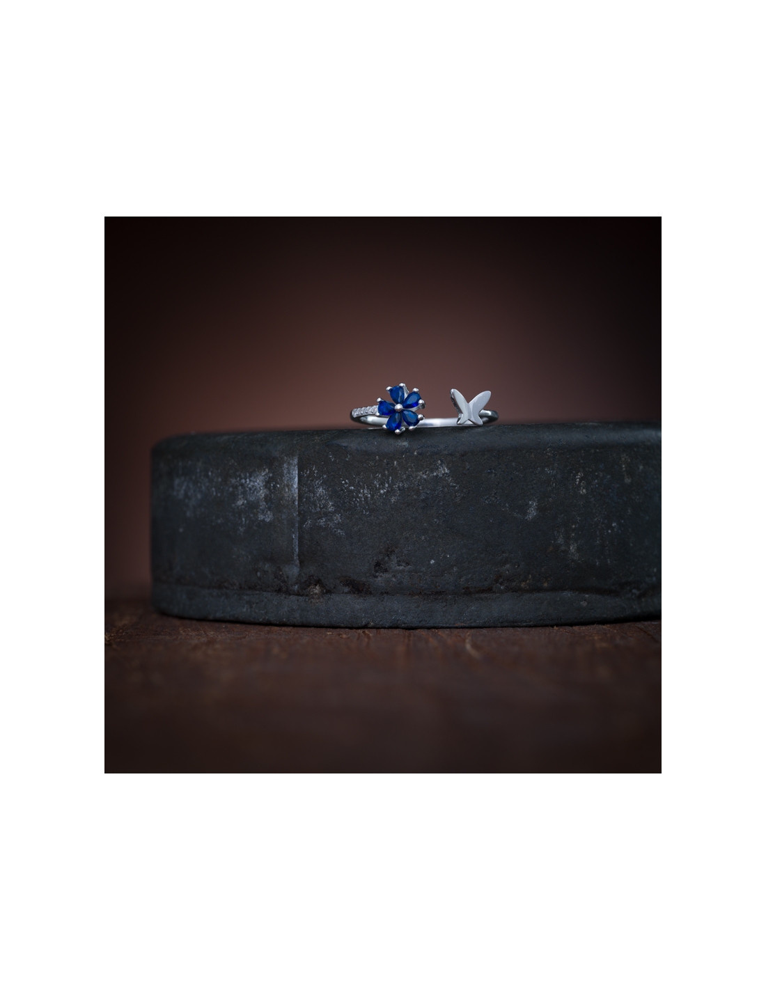 Anillos de plata .925 Flor con circonias y mariposa lisa, talla 7