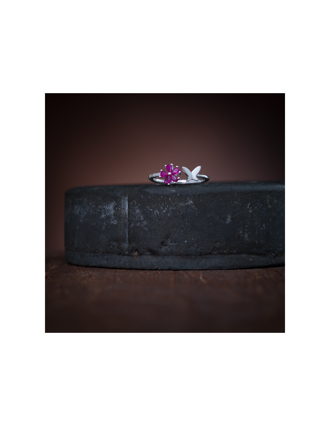 Anillos de plata .925 Flor con circonias y mariposa lisa, talla 7