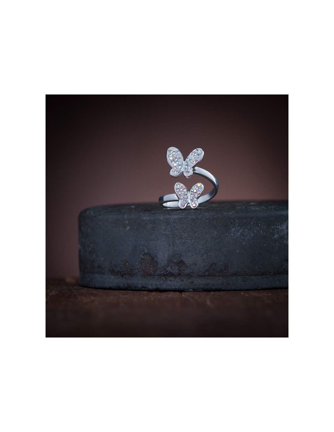 Anillos de plata .925 ajustable mariposa con cristales