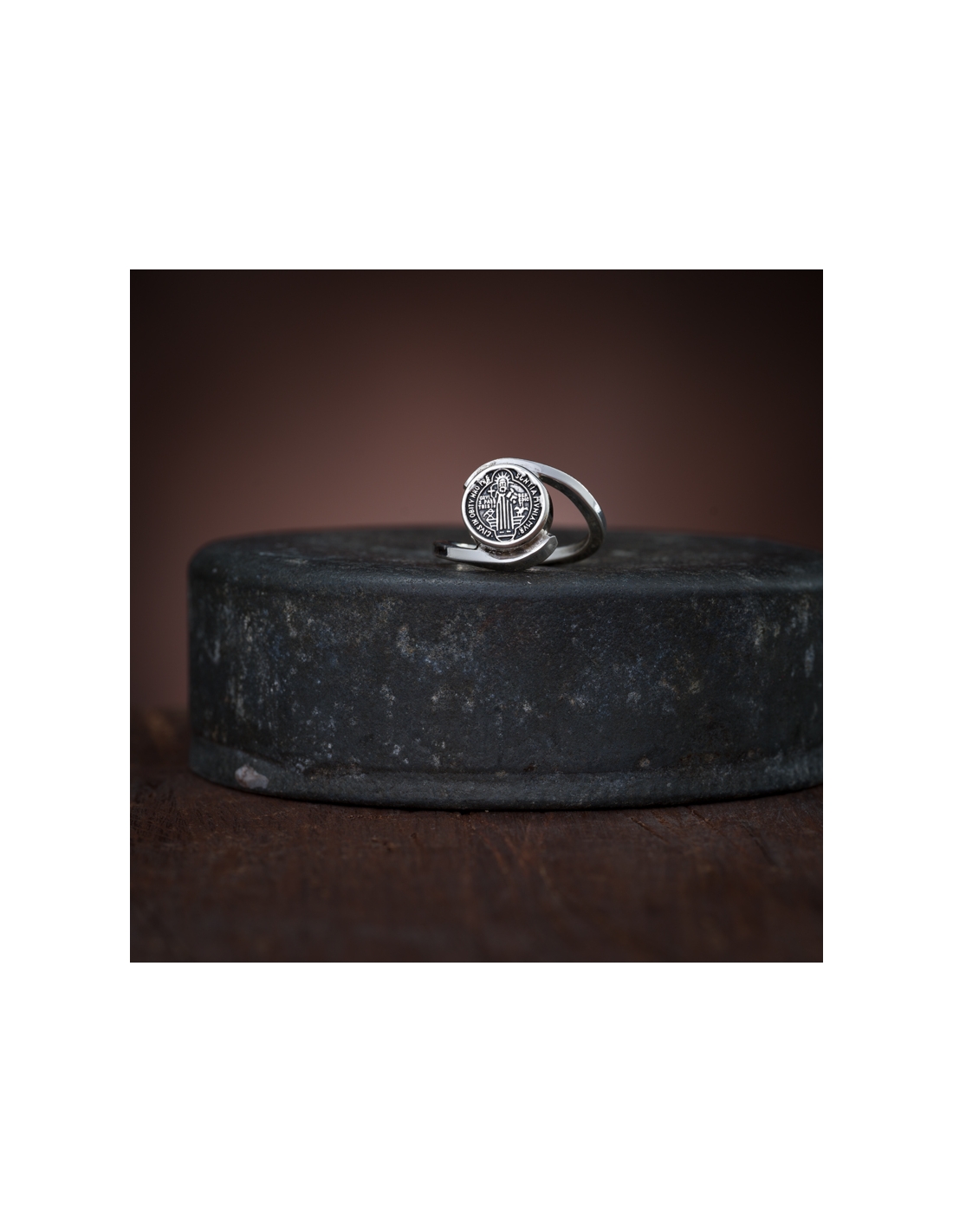 Anillos de plata .925 con medalla de san Benito, medida #9.5
