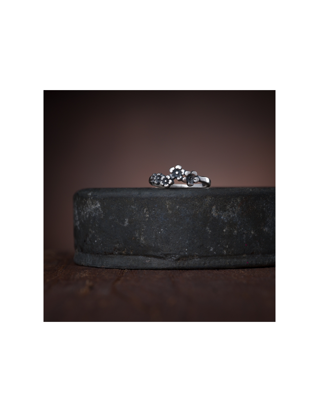Anillos de plata .925 flores oxidadas, medida #6.5