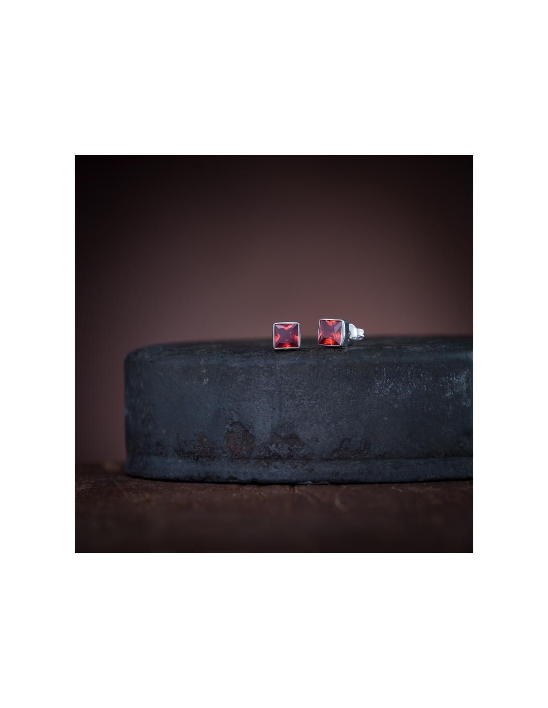 Aretes de plata .925 cubo con cristal, broche mariposa