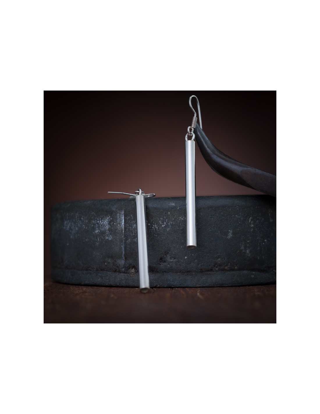 Aretes de plata .925 tubo liso colgante