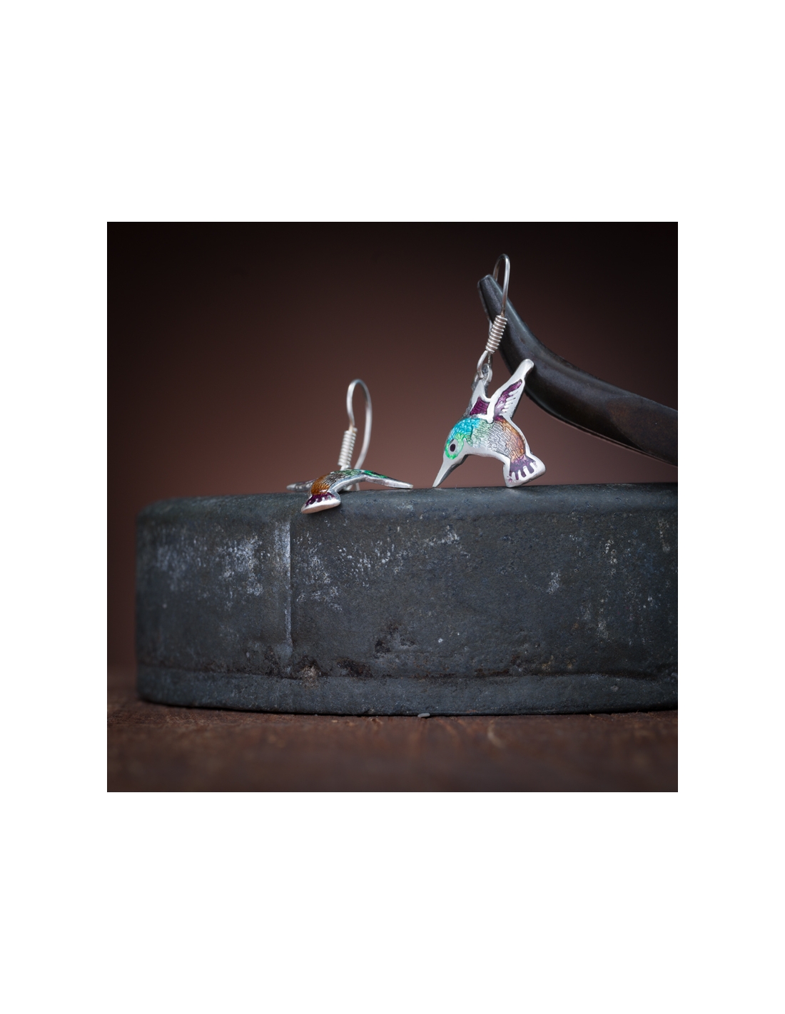 Aretes de plata .925 colibrís con esmalte