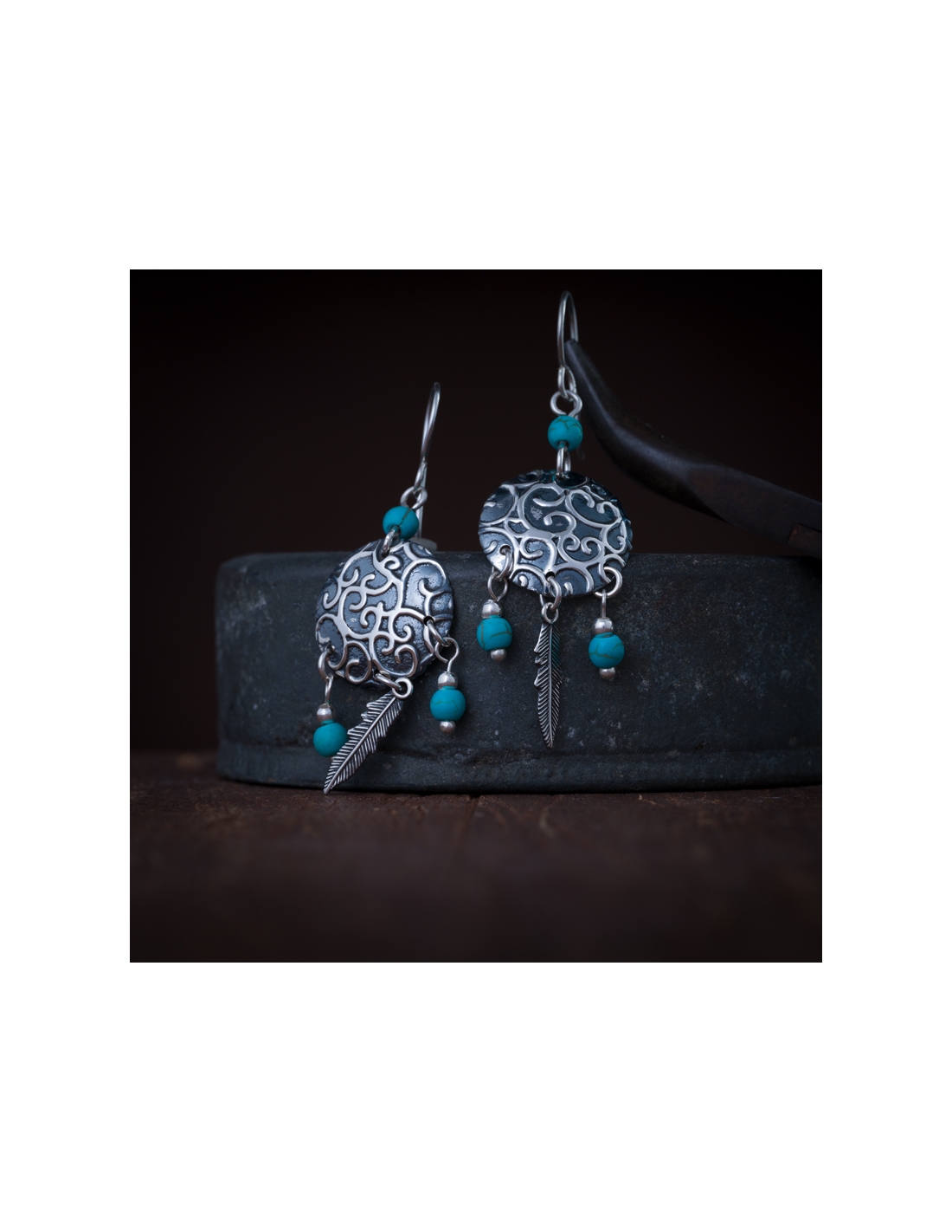 Aretes de plata .925 atrapa sueños con piedra turquesa