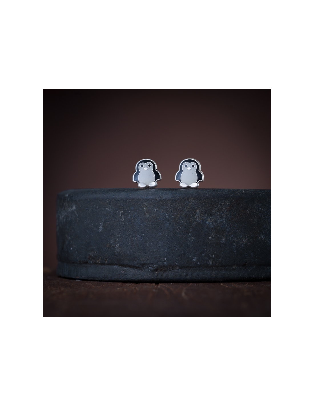 Aretes de plata .925 pingüino con resina broche bolita