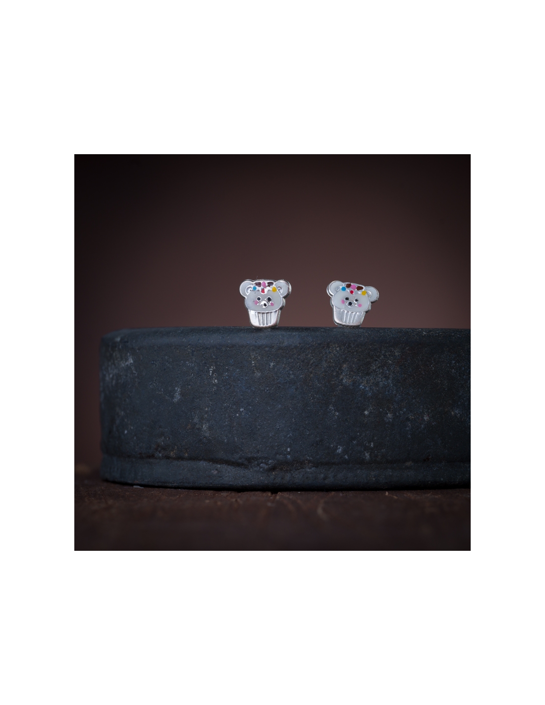 Aretes de plata .925 pastelito de oso con resina broche bolita