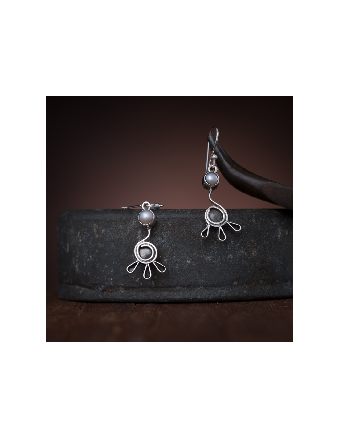 Aretes de plata .925 colgante oxidado con perla