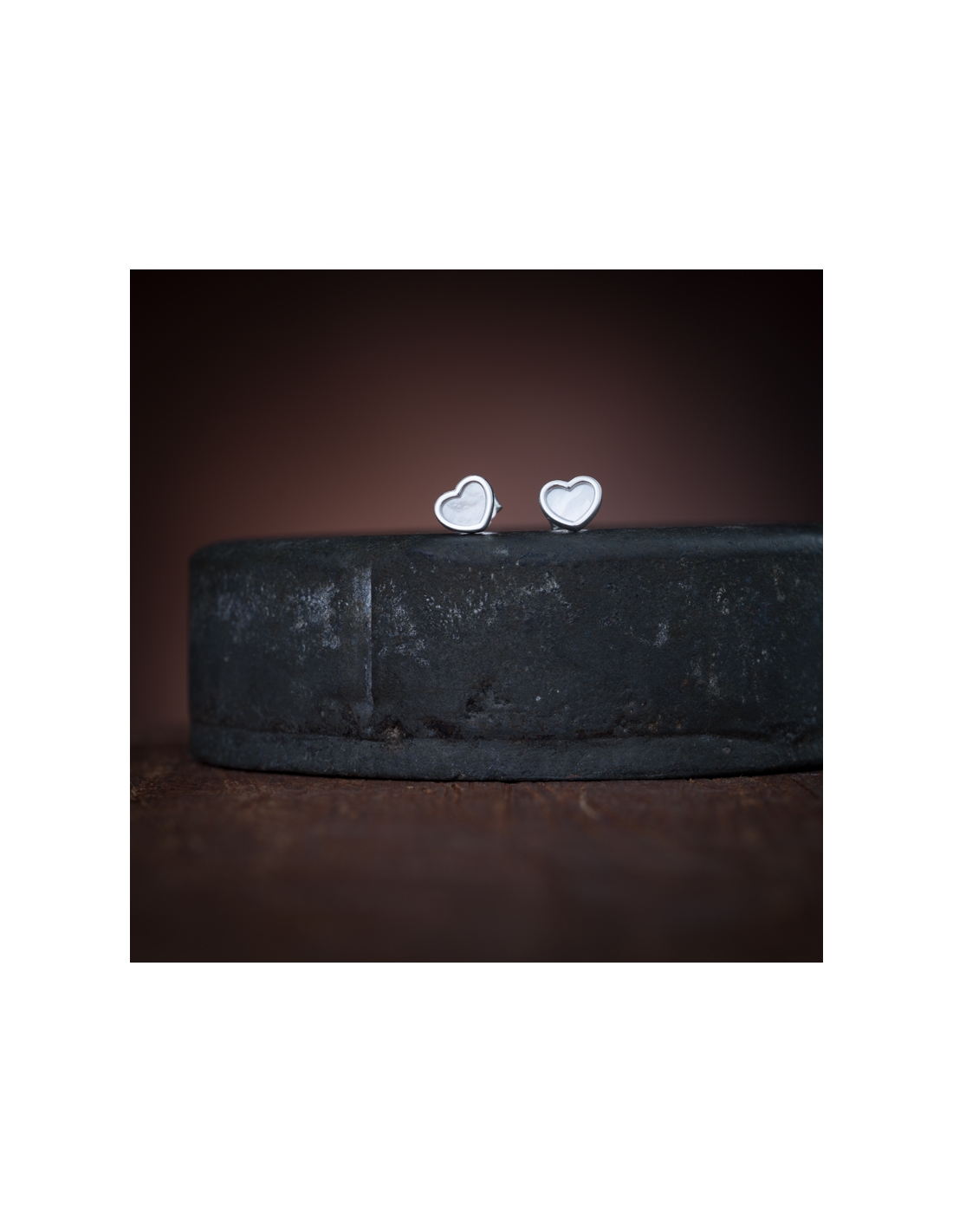 Aretes de plata .925 Corazones con concha nácar, broche mariposas
