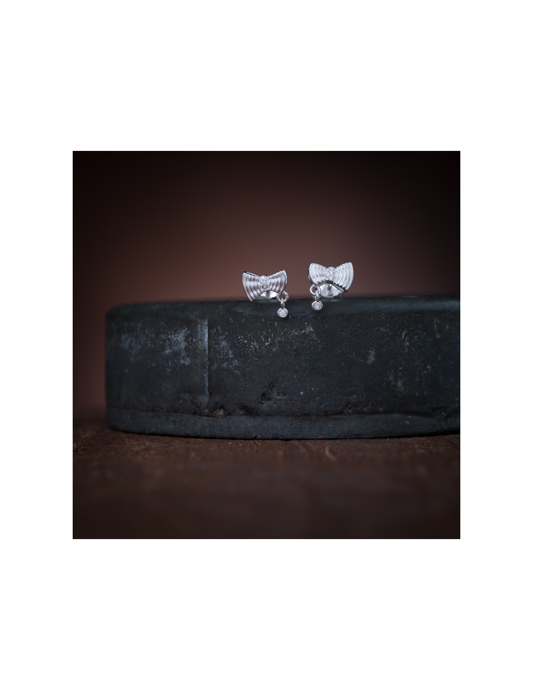 Aretes de plata .925 Moños rayados, circonia colgante, broches de mariposas