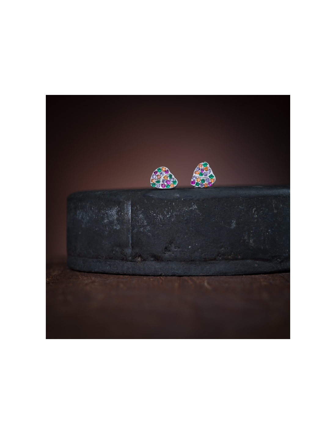 Aretes de plata .925 con micro circonias multi color, broches de bolitas