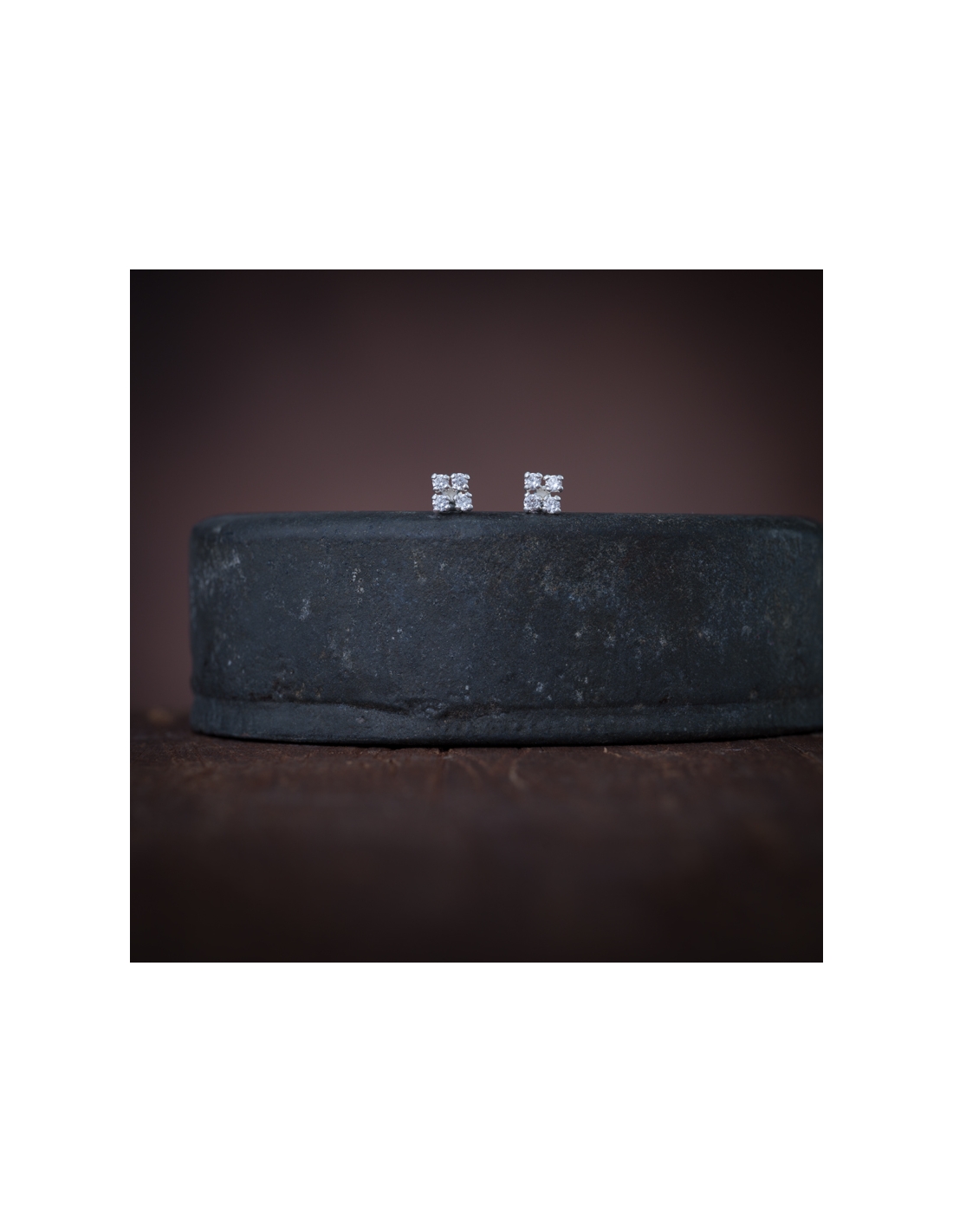 Aretes de plata .925 cuadro con circonias, broche de bolita
