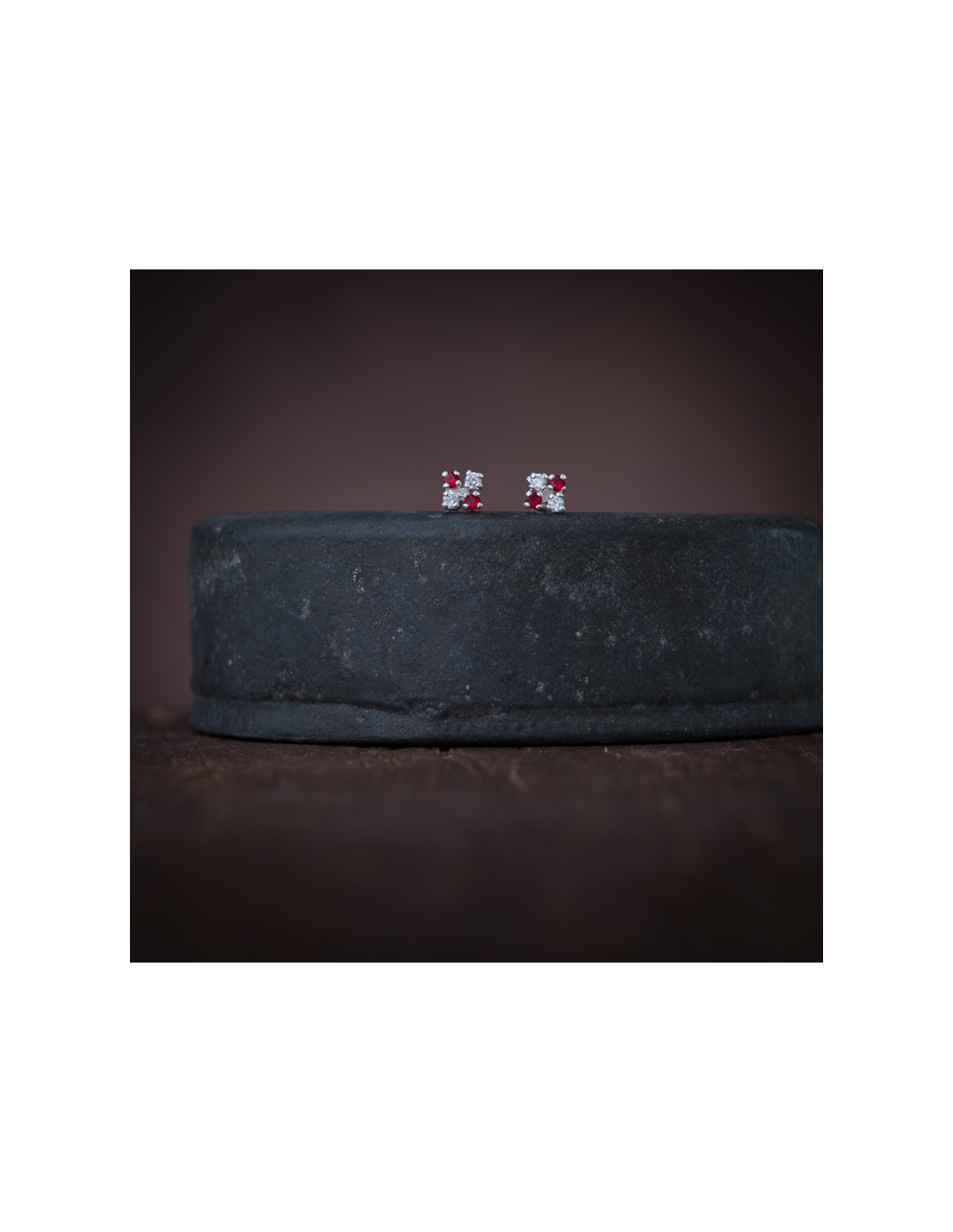Aretes de plata .925 cuadro con circonias, broche de bolita