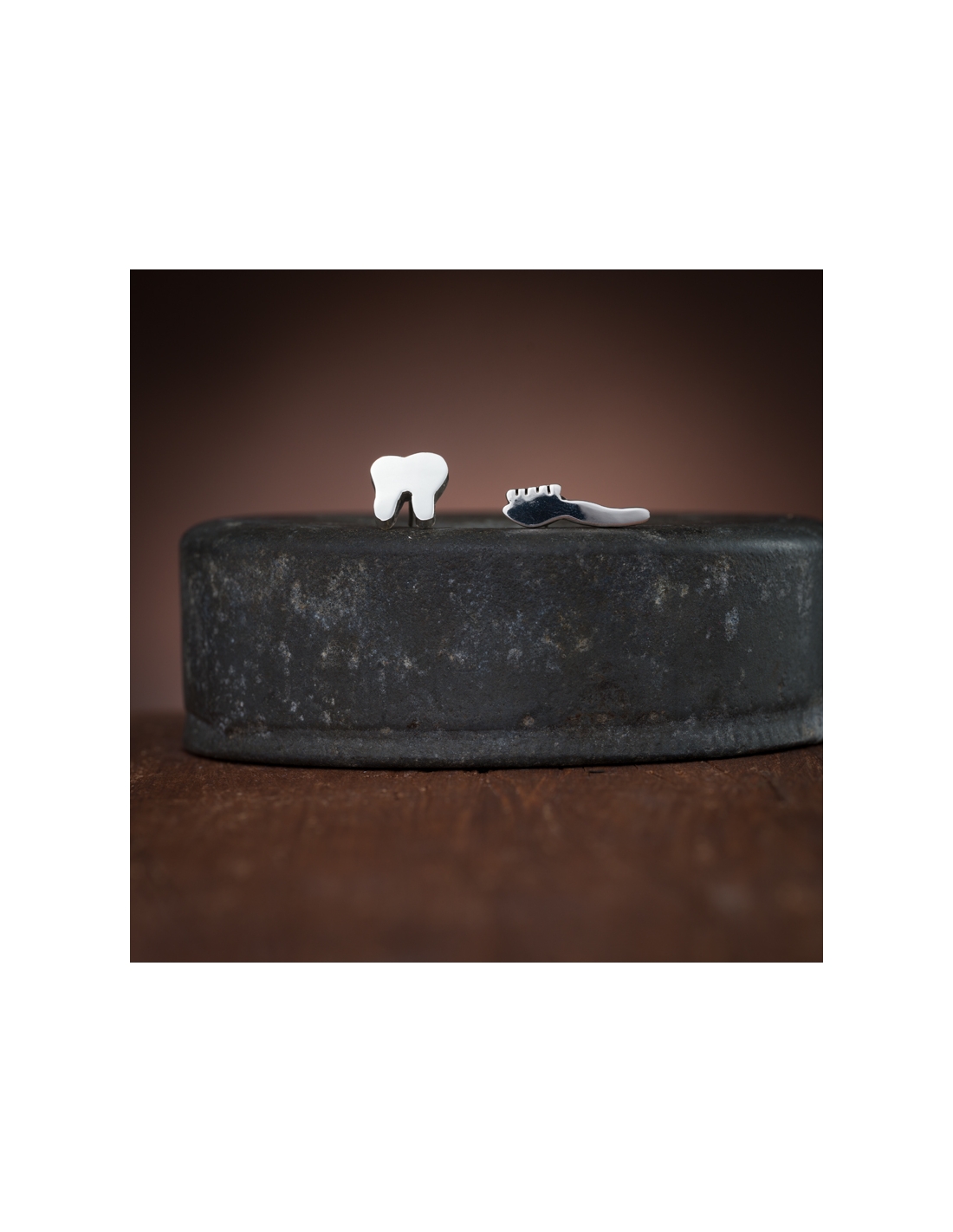 Aretes de plata .925 cartoneado, muela y cepillo