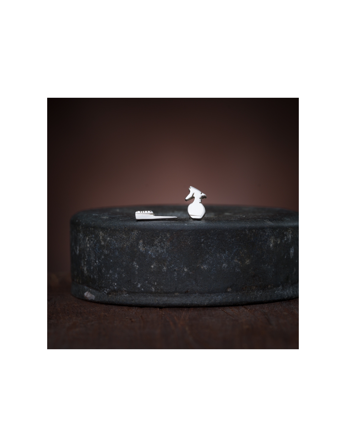 Aretes de plata .925 cartoneados en forma de cepillo y atomizador