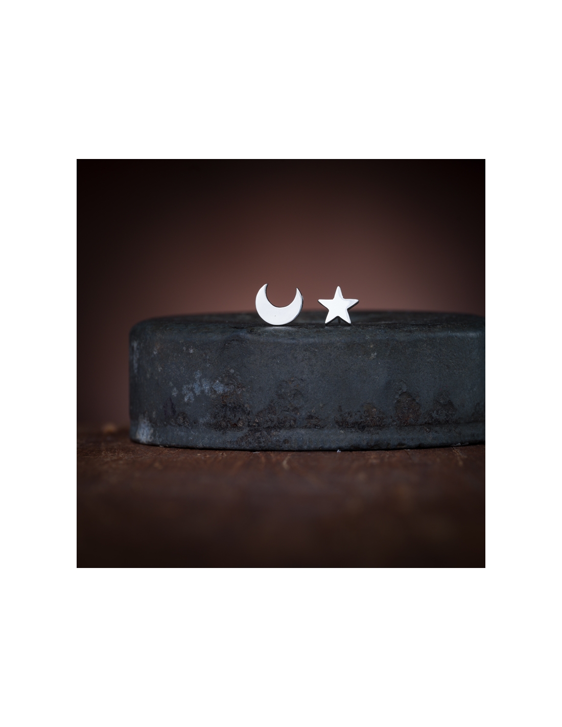 Aretes de plata .925 cartoneado estrella y luna