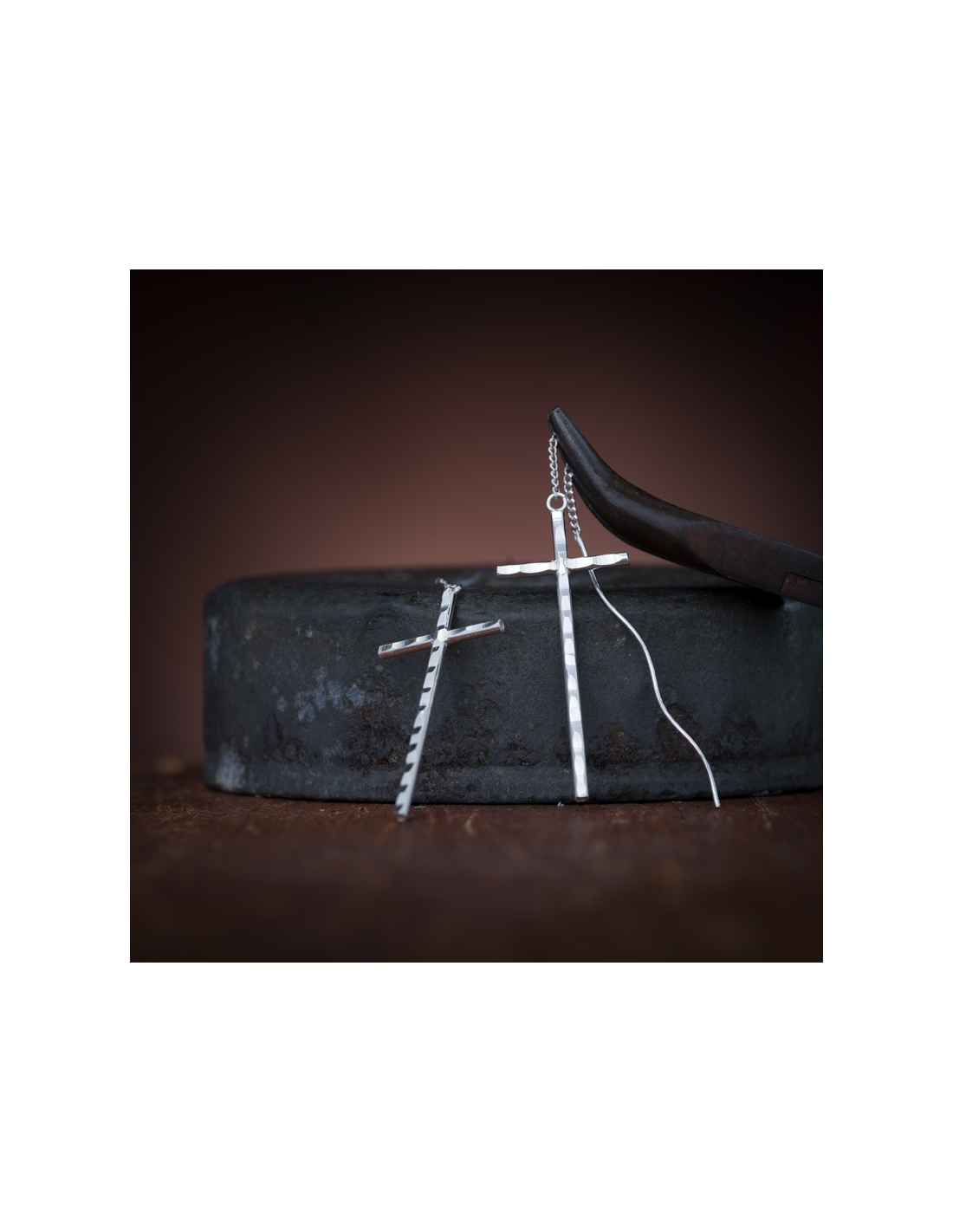 Aretes de plata .925 violador con cruz colgante martillada