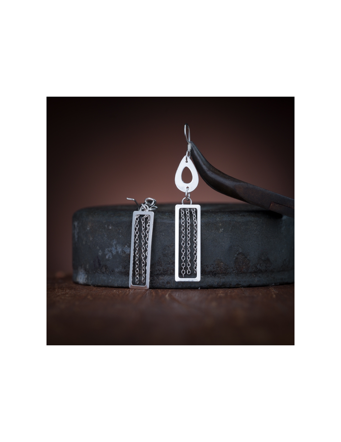 Aretes de plata .925 gota lisa y rectángulo con cadenita