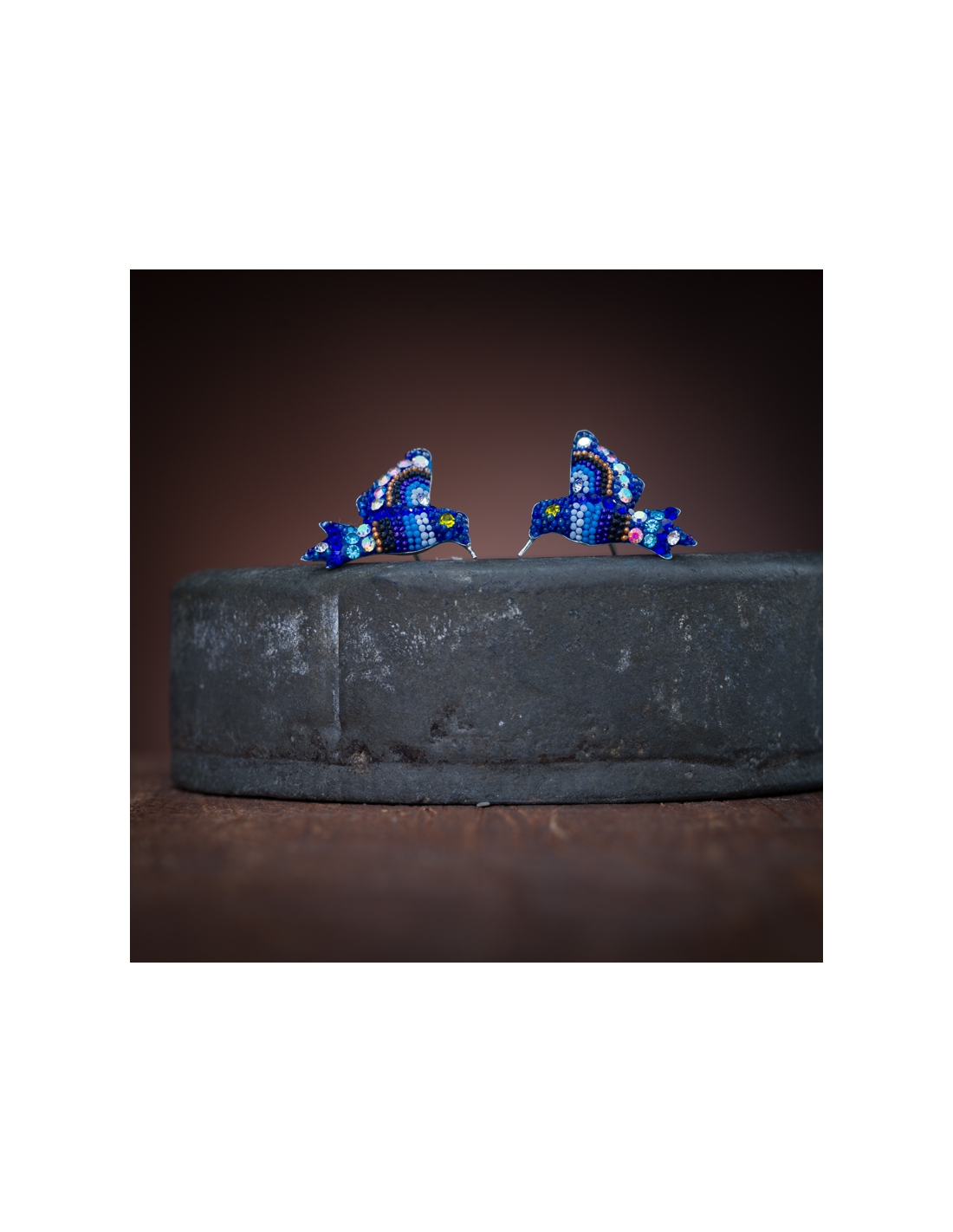 Aretes de plata .925 colibrí con cristales y microperlas