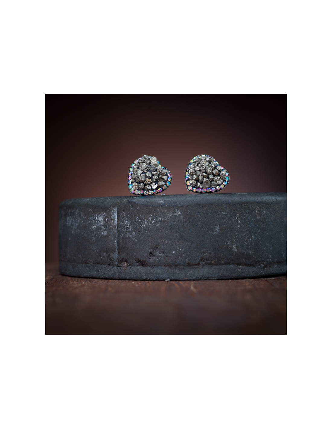 Aretes de plata .925 corazones con cristales y piedra pirita