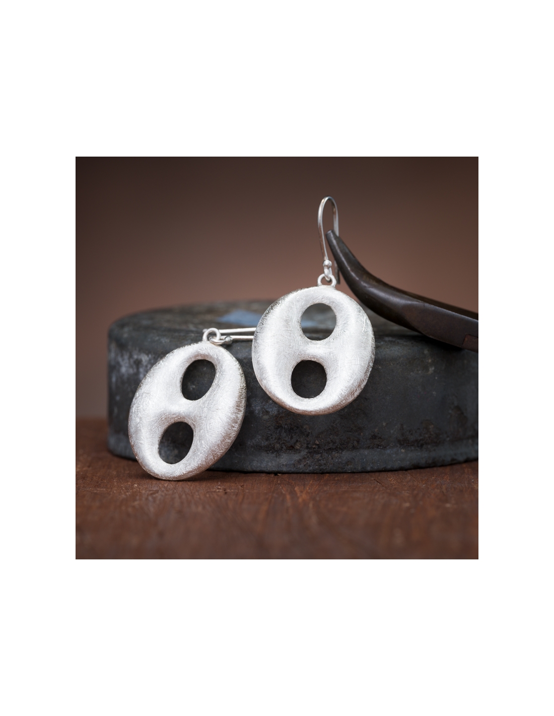 Aretes de plata .925 óvalos cartoneados, perforados mate