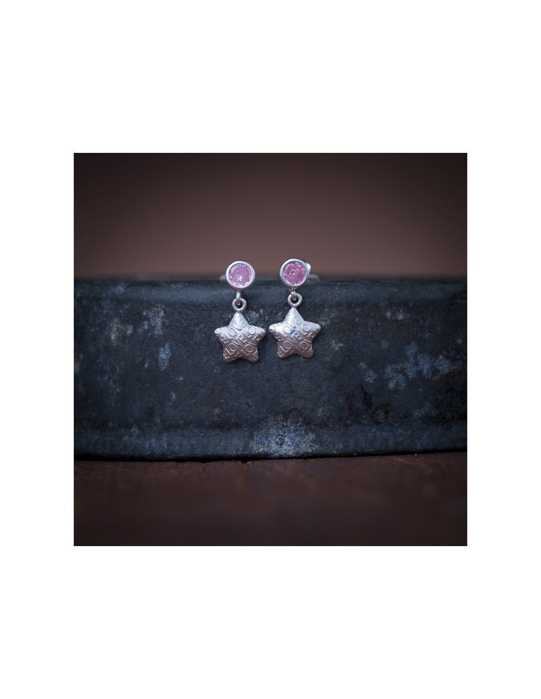 Aretes de plata .925 con circonia y estrella estampada broche de bolita