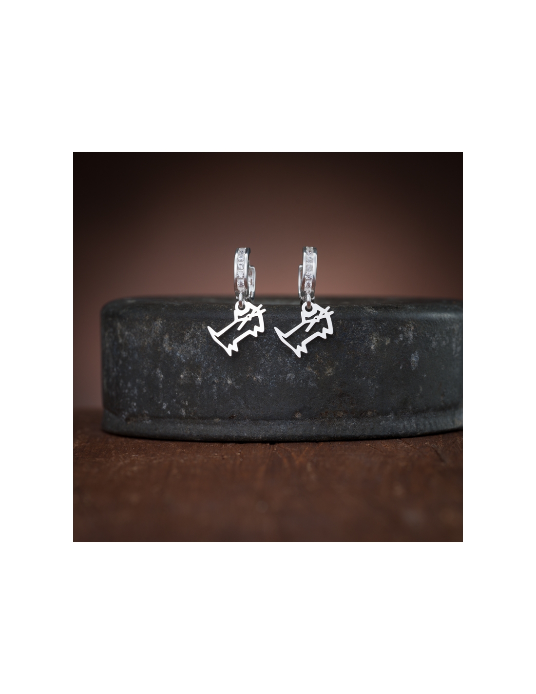 Arracadas de plata .925 Huggies con circonia y dije colgante gatito