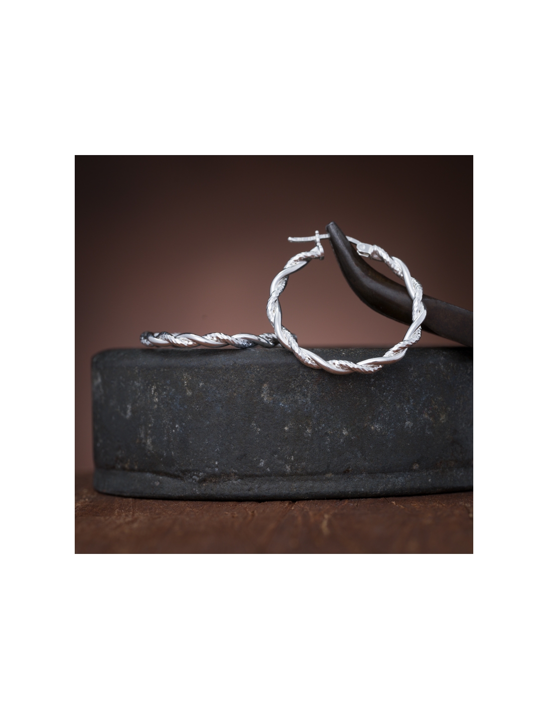 Arracadas de plata .925 diamantada y lisa torcida de 2.8 cm de diámetro