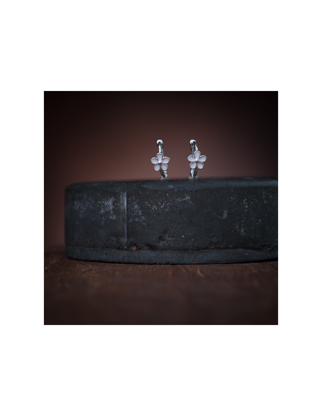 Arracadas de plata .925 tipo Huggies, flores de con concha nácar