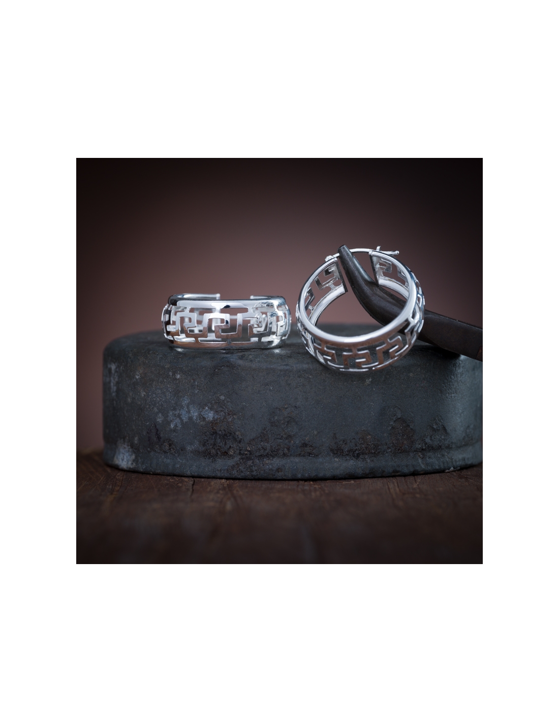 Arracadas de plata .925 lisas con calados en forma de greca, 2 cm de diámetro