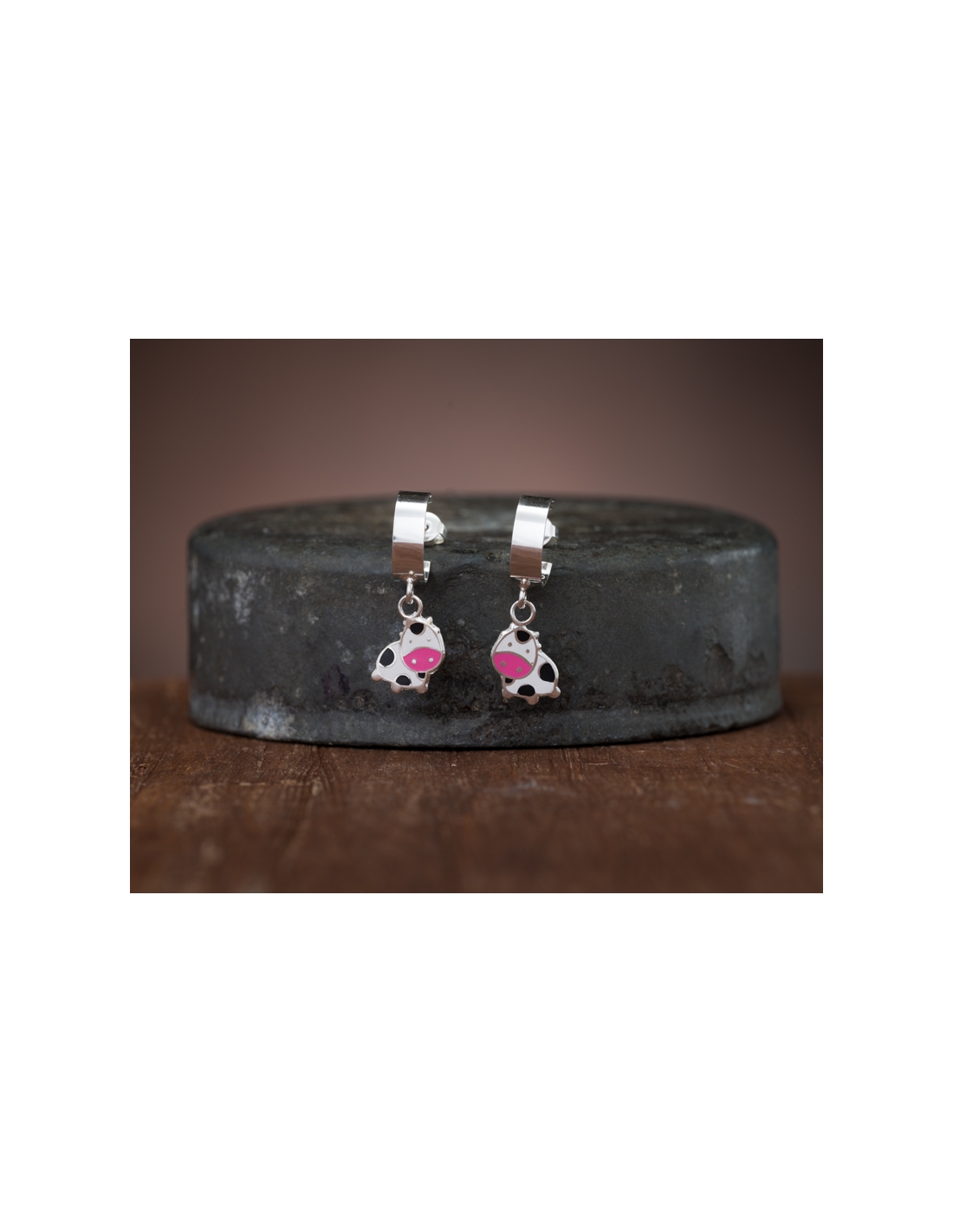 Arracadas de plata .925 lisa con dije vaquita con esmalte