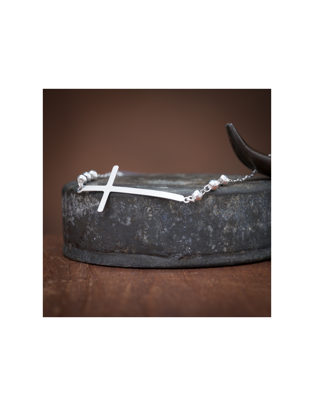 Pulseras de plata .925 con cruz y bolitas diamantadas