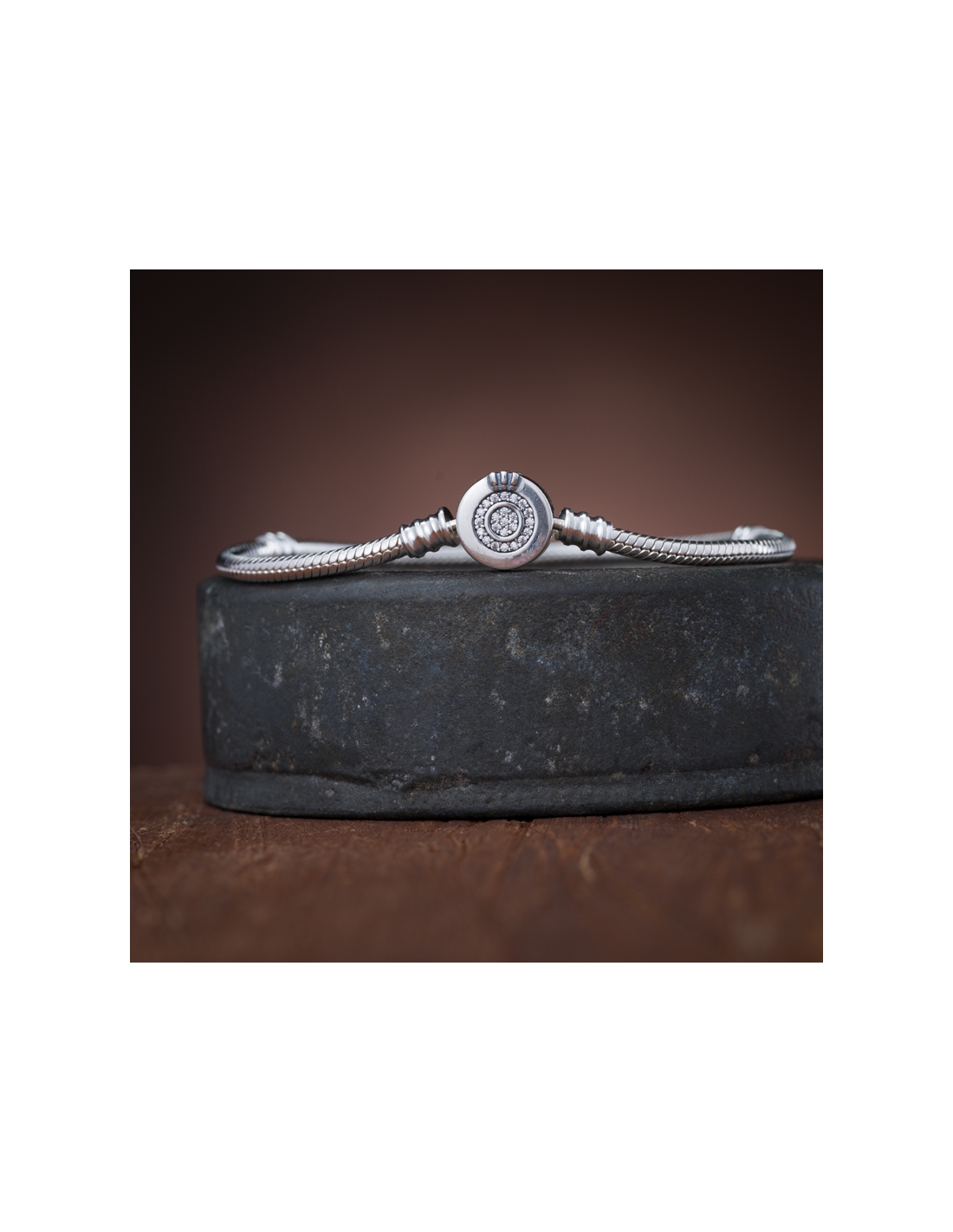 Pulsera de plata .925 tipo PAN.. de 19 cm broche corona con circonia