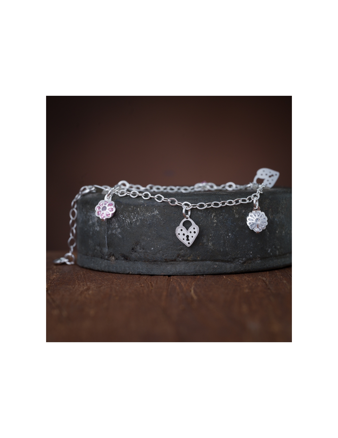Pulseras de plata .925 con corazones colgantes y flores