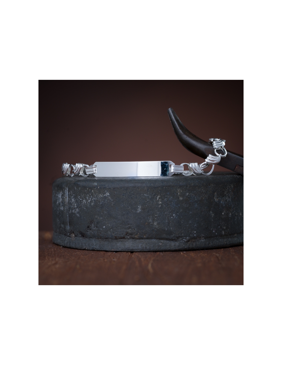 Esclavas de plata .925 plaquita lisa y eslabones caracol, de 18 cm de largo
