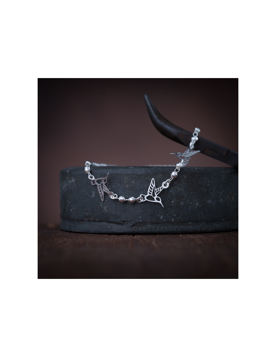 Pulseras de plata .925 con bolitas diamantadas y dijes colibrís
