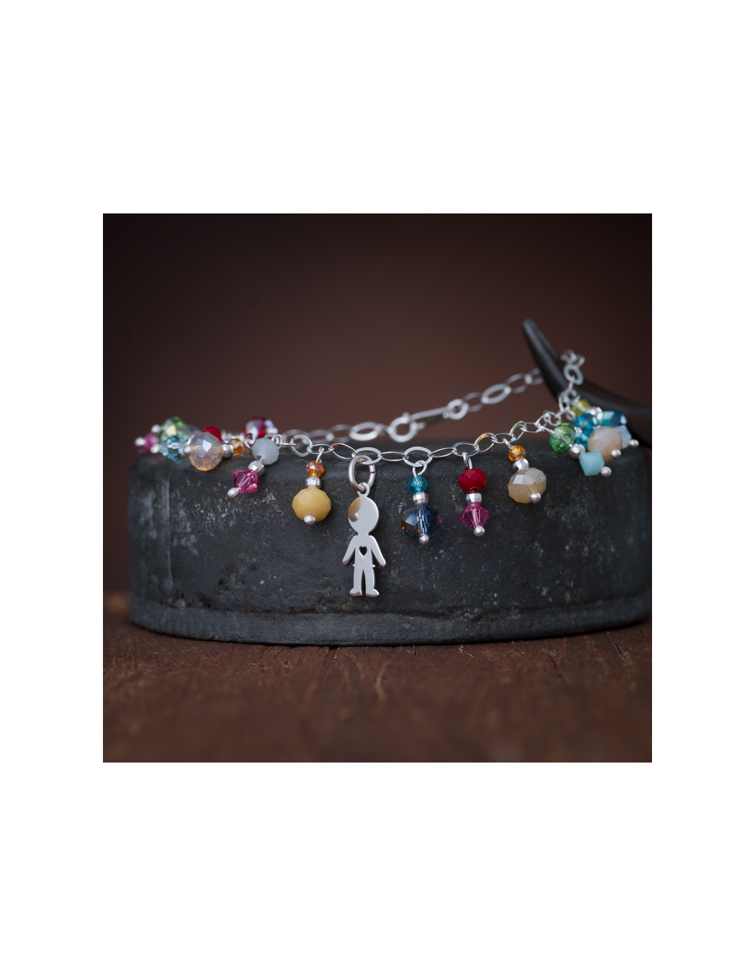 Pulseras de plata .925 con cristales colgantes y dije niño con corazón