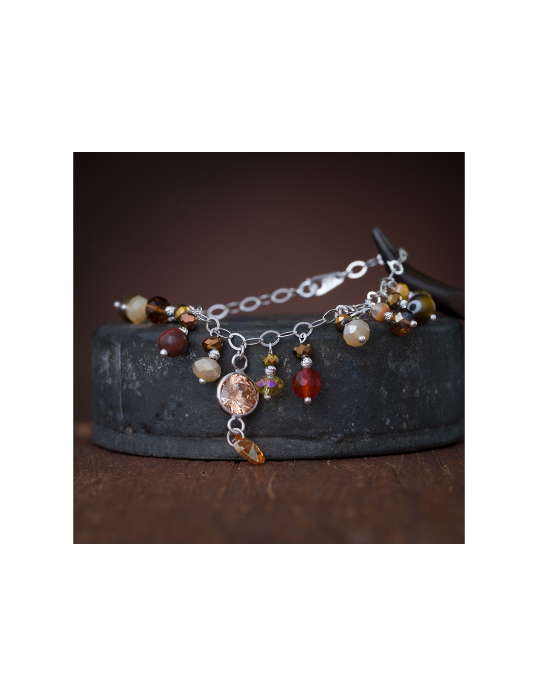 Pulseras de plata .925 con cristales colgantes y dije círculos con circonia
