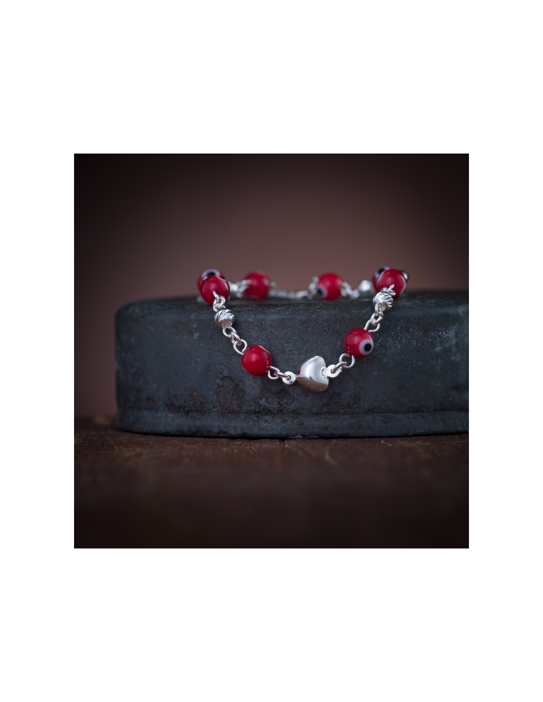 Pulseras de plata .925 ojitos, bolitas diamantadas, dijes corazones bombeados