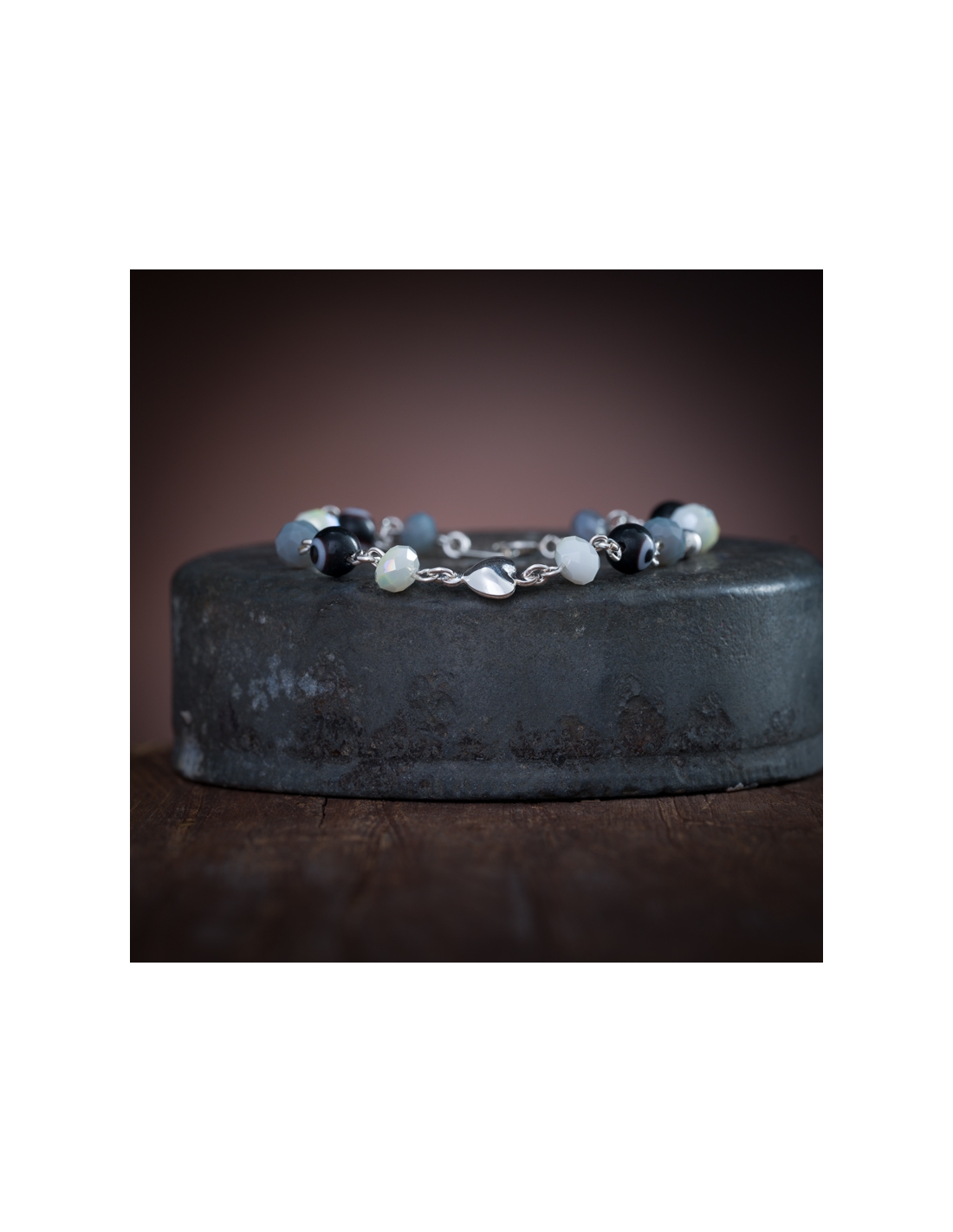Pulseras de plata .925 con cristales y ojitos dije corazón liso
