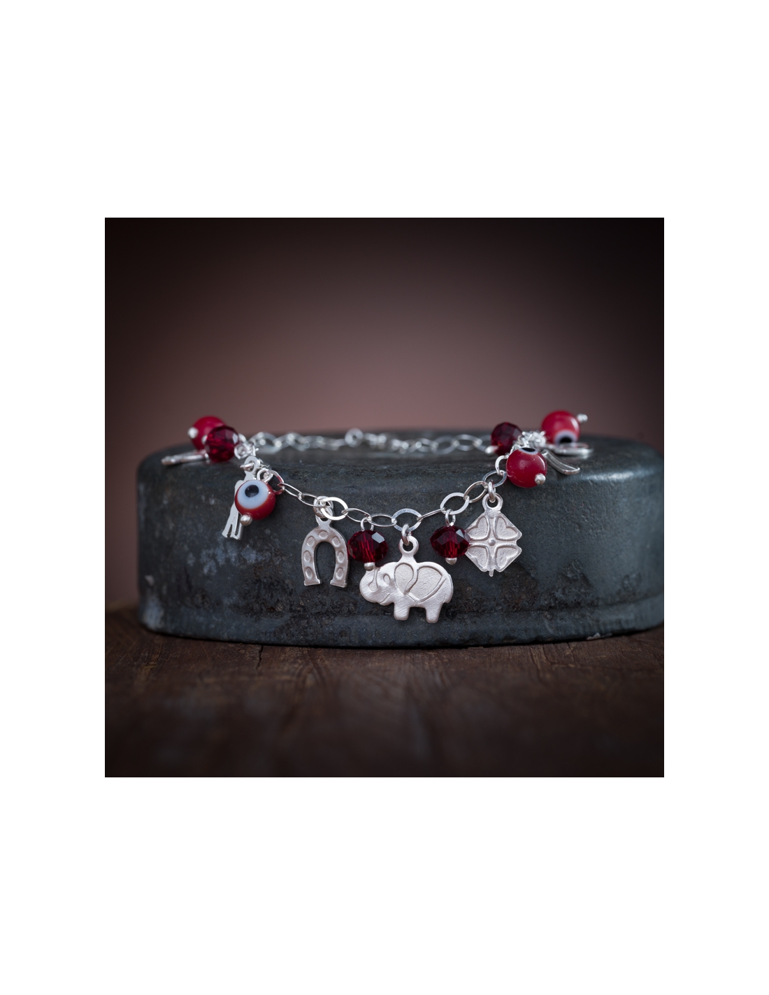 Pulseras de plata .925 con cristales y dijes de la suerte