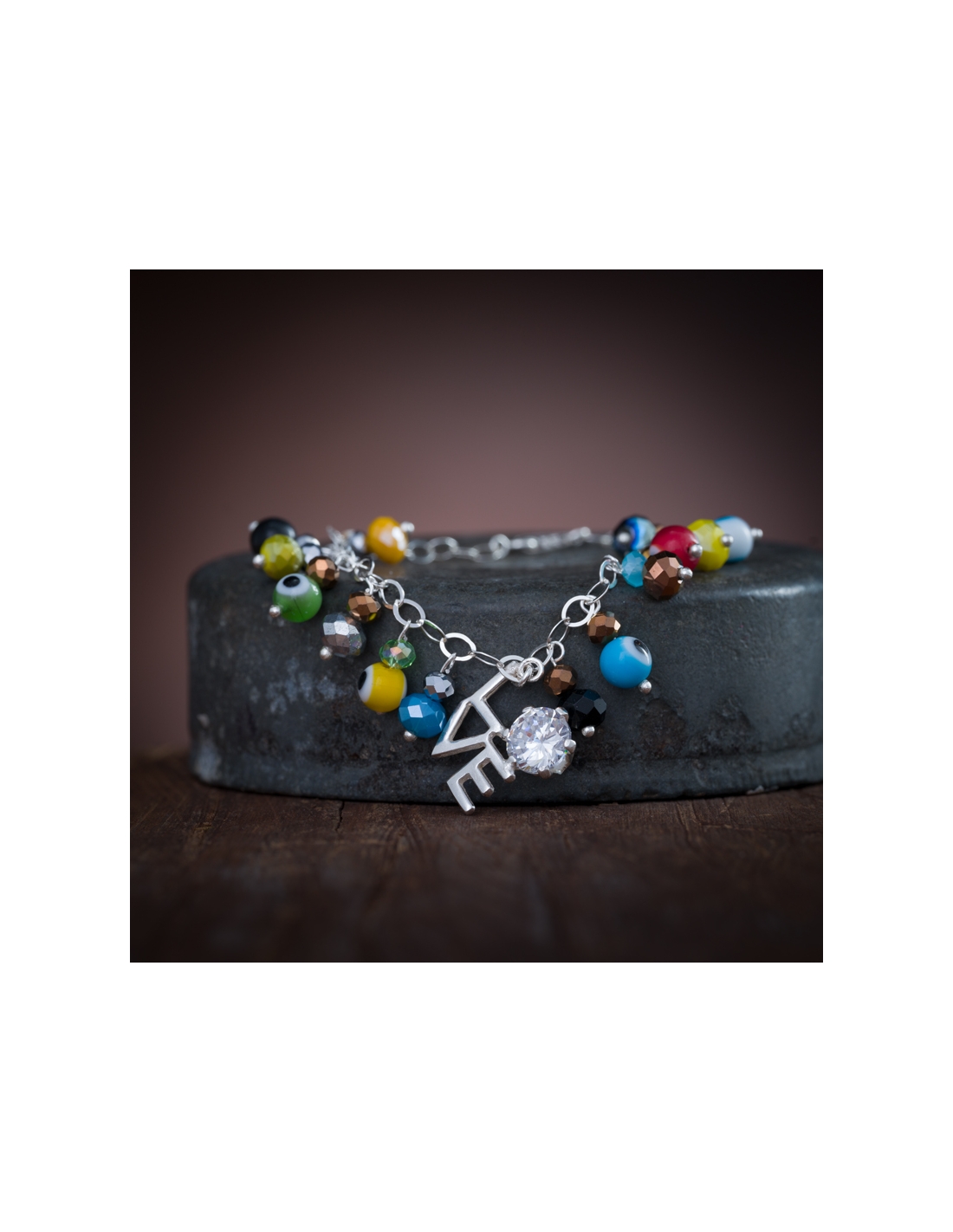 Pulseras de plata .925 con cristales y ojitos dije love