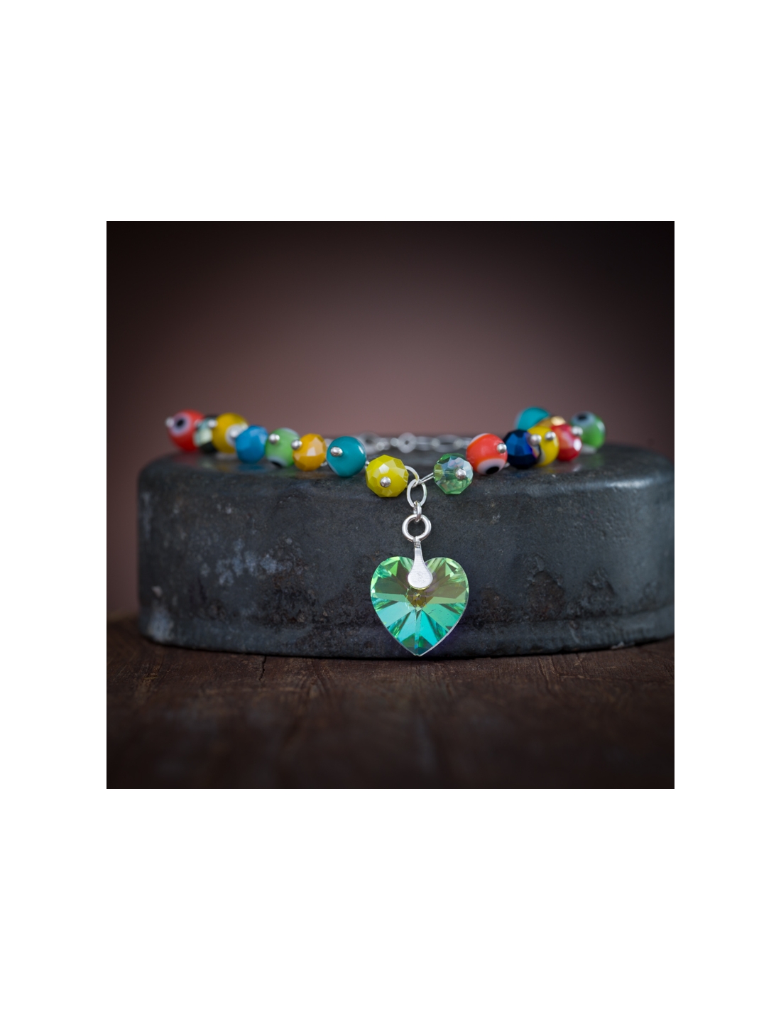 Pulseras de plata .925 con cristales y dije corazón cristal