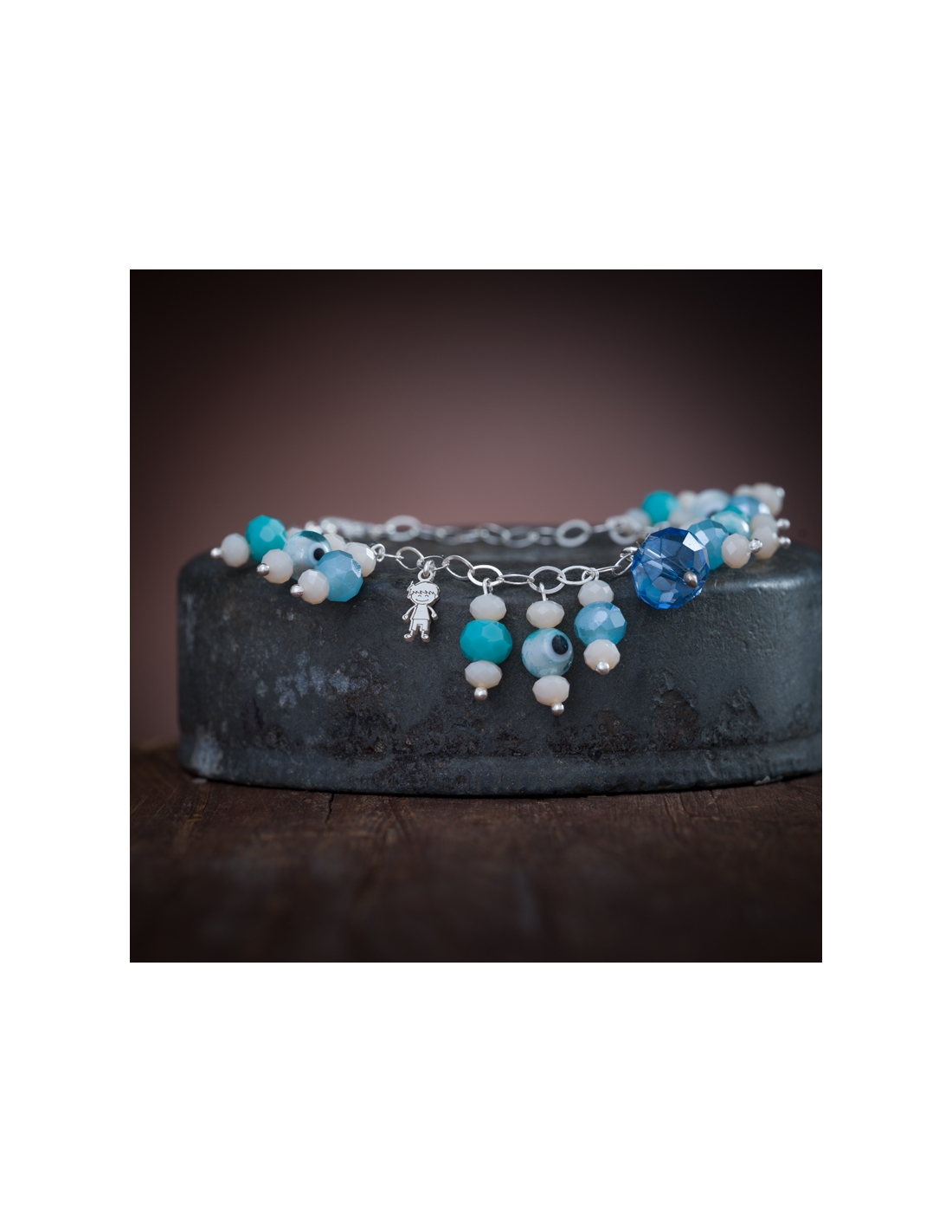 Pulseras de plata .925 con cristales y ojitos dijes niño