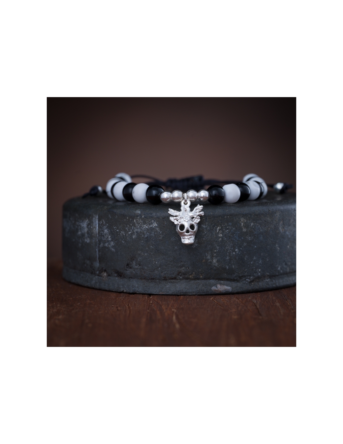 Pulsera de plata .925 con piedra natural (Ónix Y Huevera), dije "Catrina"